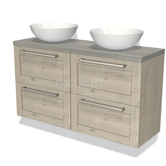 Badmöbel für Aufsatzwaschbecken 120cm Modulo Plato Slim Hellgraue Eiche 4 Schubladen Rahmen Graue Eiche Platte