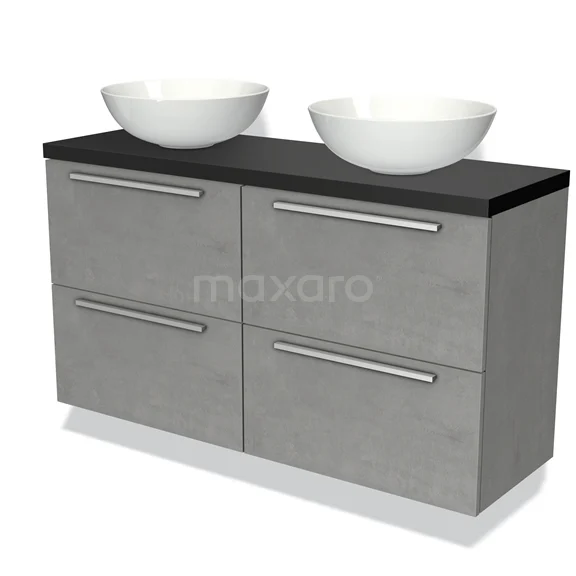 Badmöbel für Aufsatzwaschbecken 120cm Modulo Plato Slim Hellgrauer Beton 4 Schubladen Flach Matt Schwarz Platte
