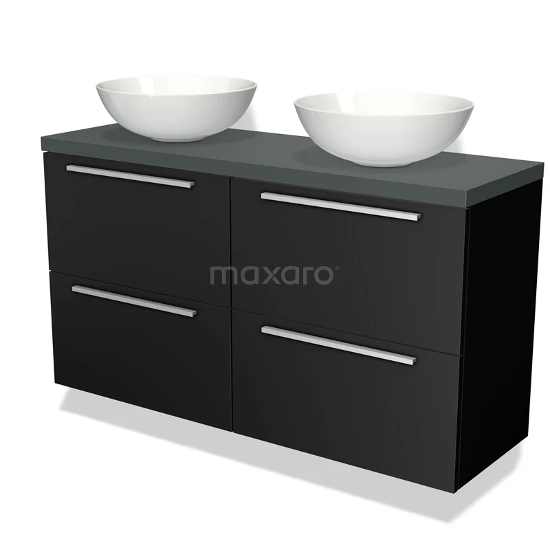 Badmöbel für Aufsatzwaschbecken 120cm Modulo Plato Slim Matt Schwarz 4 Schubladen Flach Dunkelgrau Platte