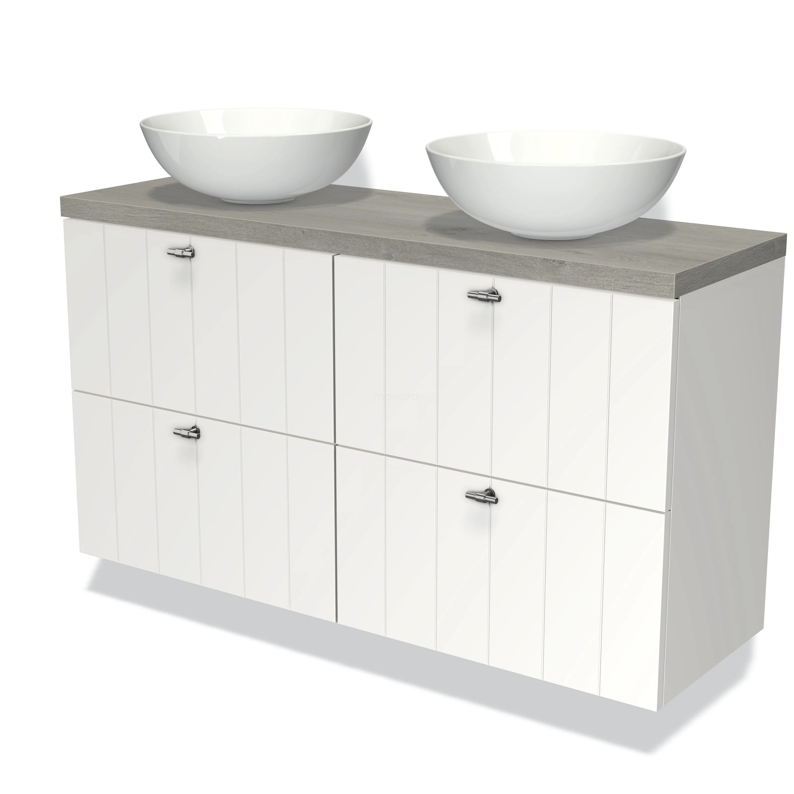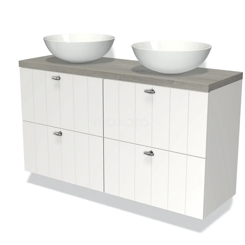 Badmöbel für Aufsatzwaschbecken 120cm Modulo Plato Slim Matt Weiß 4 Schubladen Lamelle Graue Eiche Platte