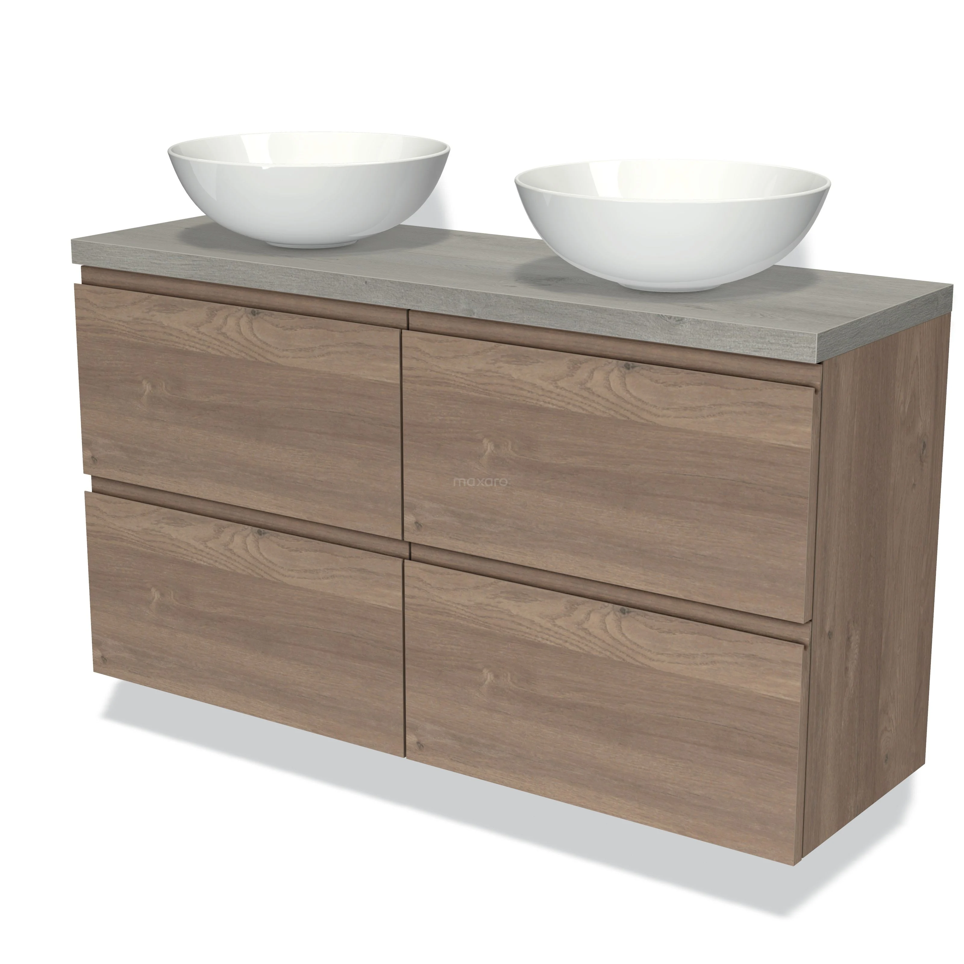 Badmöbel für Aufsatzwaschbecken 120cm Modulo Plato Slim mittelbraune Eiche 4 Schubladen grifflos graue Eiche Platte