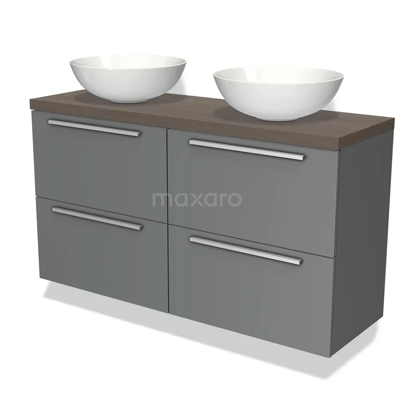 Badmöbel für Aufsatzwaschbecken 120cm Modulo Plato Slim Mittelgrau 4 Schubladen Flach dunkelbraune Eiche Platte