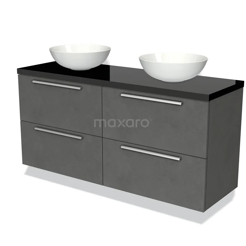 Badmöbel für Aufsatzwaschbecken 140cm Modulo Plato Dunkelgrau Beton 4 Schubladen Flach Hochglanz Schwarz Platte
