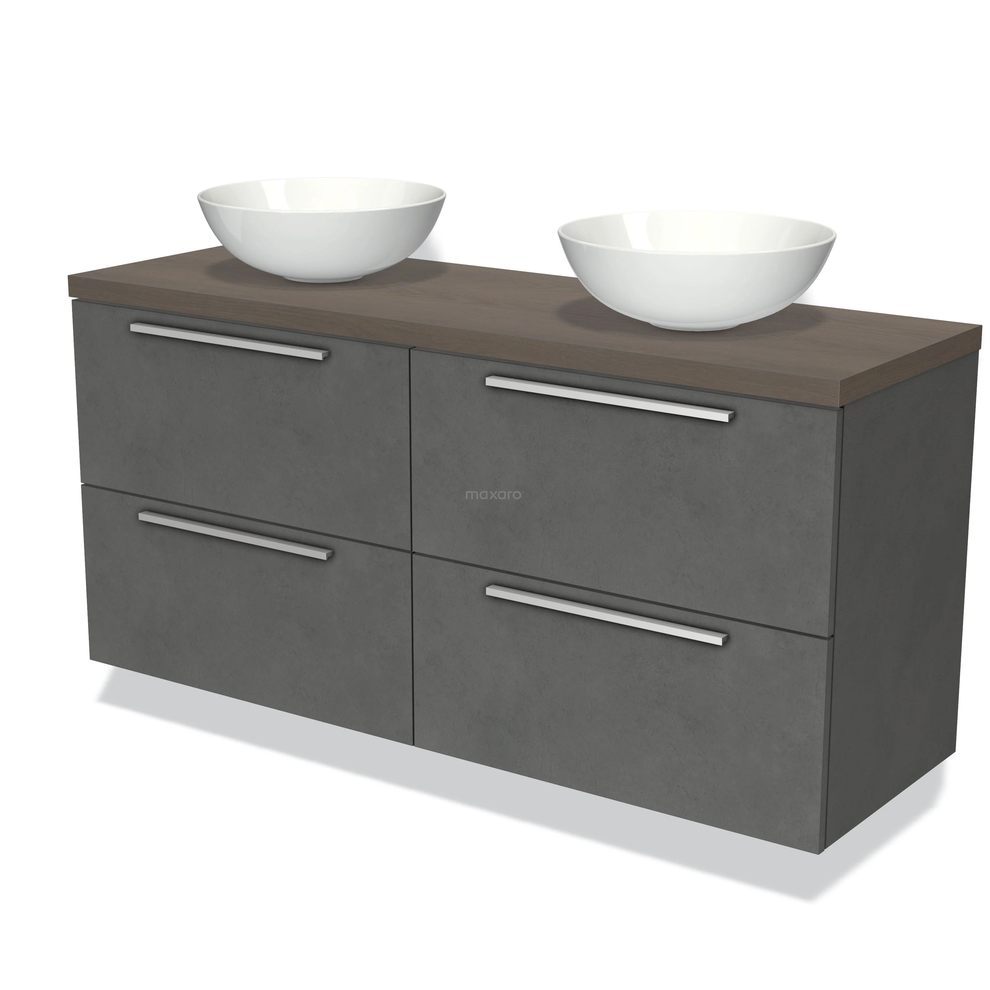 Badmöbel für Aufsatzwaschbecken 140cm Modulo Plato Dunkelgrauer Beton 4 Schubladen Flach Dunkelbraune Eiche Platte
