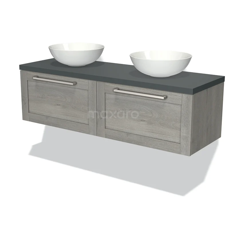 Badmöbel für Aufsatzwaschbecken 140cm Modulo Plato Graue Eiche 2 Schubladen Rahmen Dunkelgrau Platte