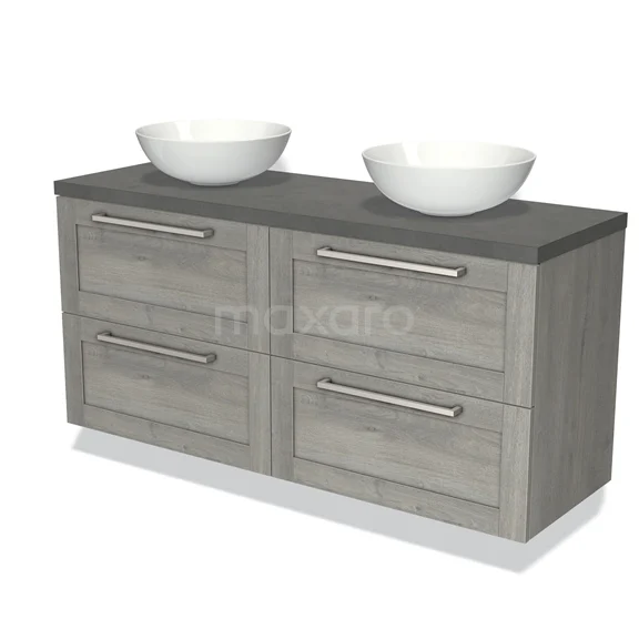 Modulo Plato Badmöbel mit Aufsatzwaschbecken | 140 cm Graue Eiche Rahmen front Dunkelgrauer Beton blatt 4 Schubladen
