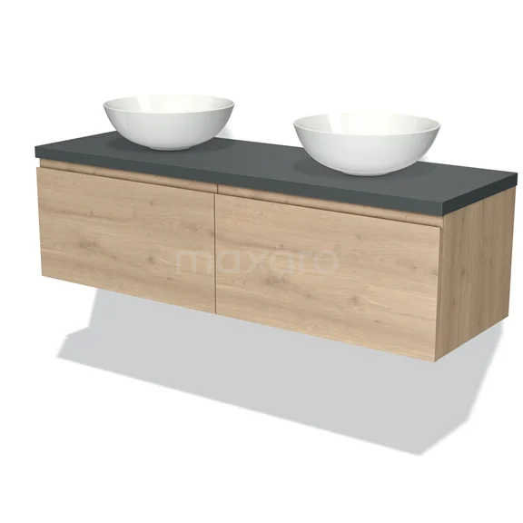 Badmöbel für Aufsatzwaschbecken 140cm Modulo Plato Hellbraune Eiche 2 Schubladen Grifflos Dunkelgrau Platte