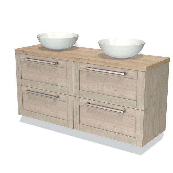 Badmöbel für Aufsatzwaschbecken 140cm Modulo Plato Hellgraue Eiche 4 Schubladenrahmen Hellbraune Eiche Platte
