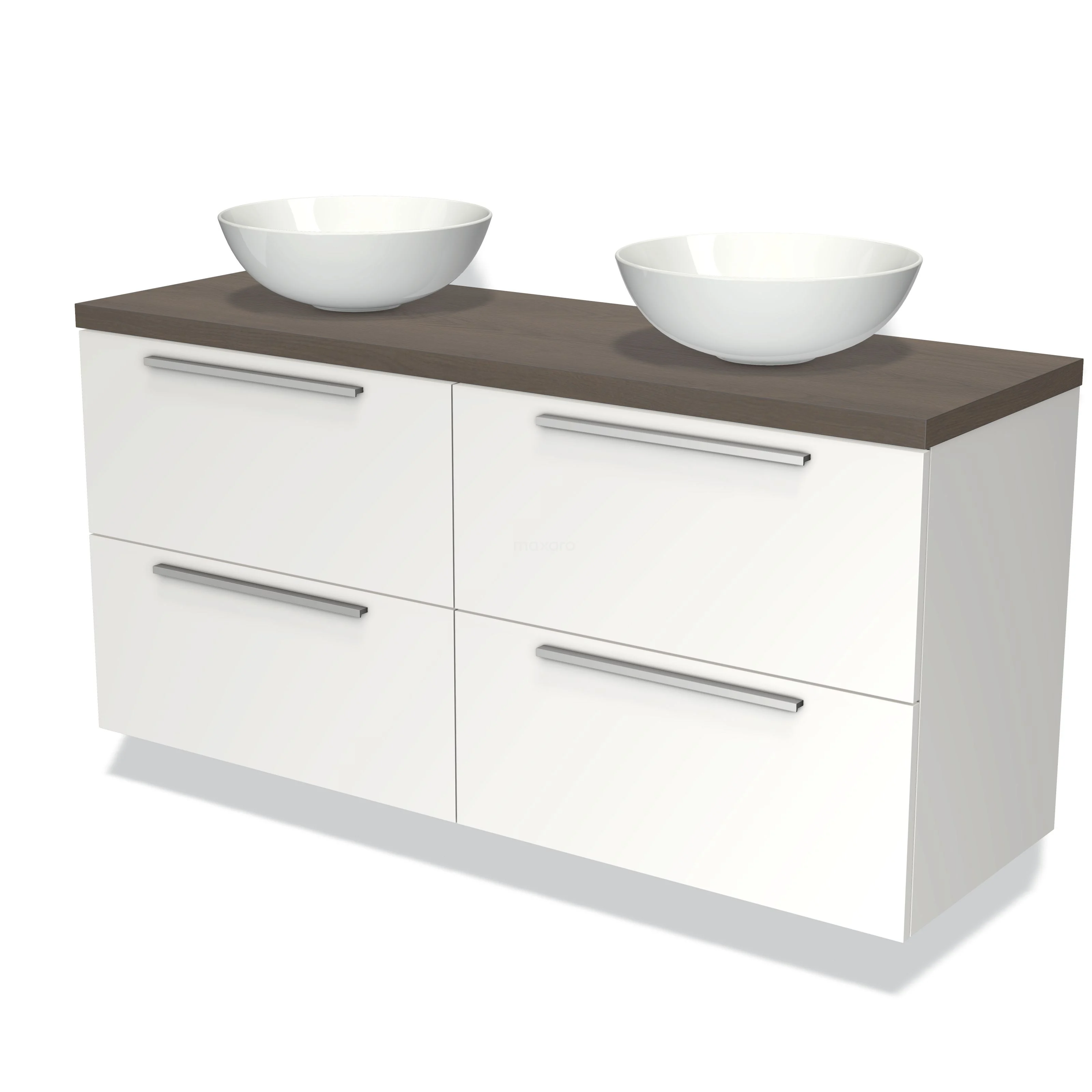 Badmöbel für Aufsatzwaschbecken 140cm Modulo Plato Matt Weiß 4 Schubladen Flach dunkelbraune Eiche Platte