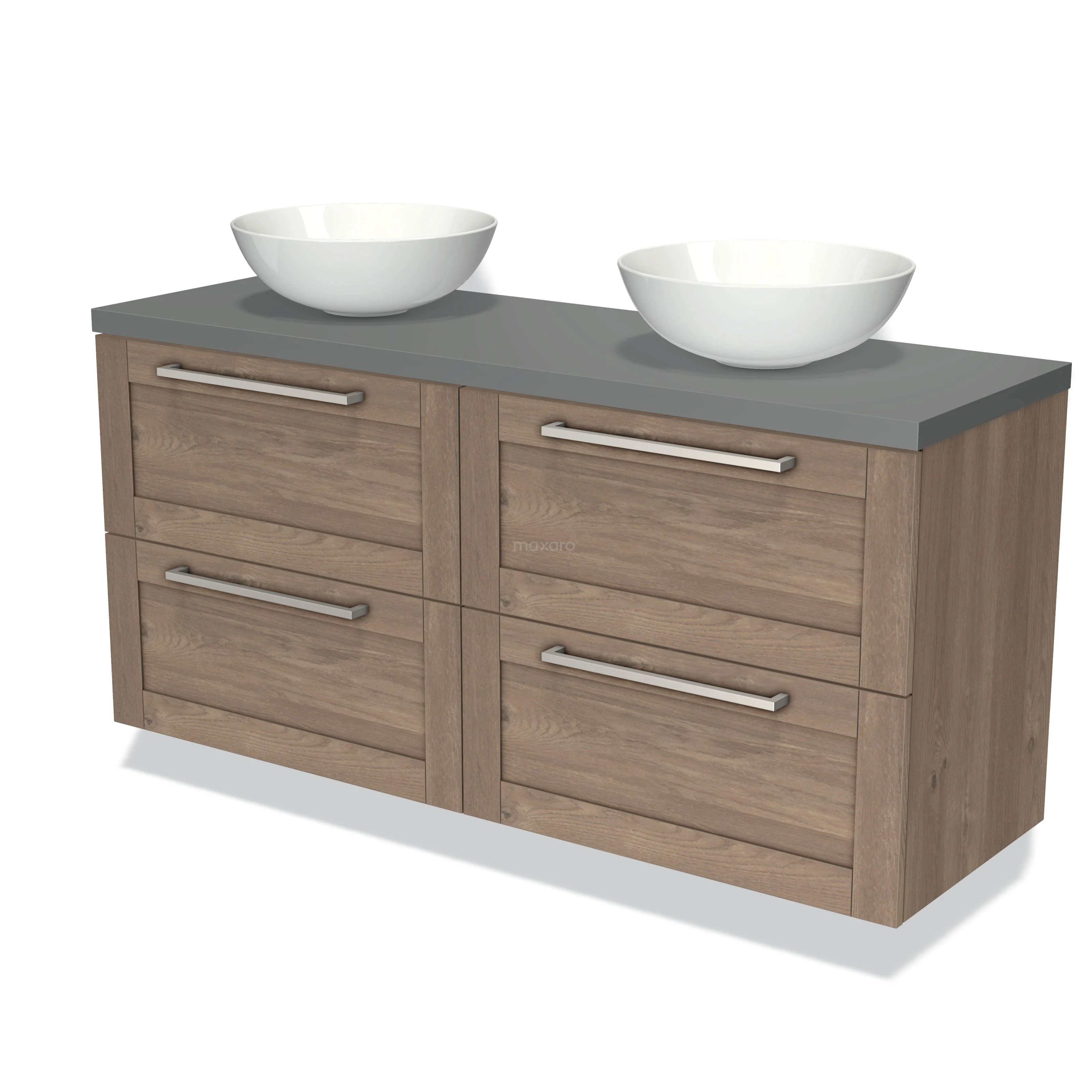 Badmöbel für Aufsatzwaschbecken 140cm Modulo Plato Mittelbraune Eiche 4 Schubladen Rahmen Mittelgrau Platte