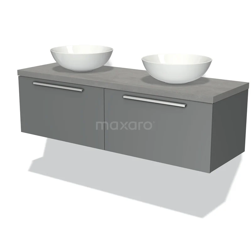 Badmöbel für Aufsatzwaschbecken 140cm Modulo Plato Mittelgrau 2 Schubladen Flach Hellgrauer Beton Platte