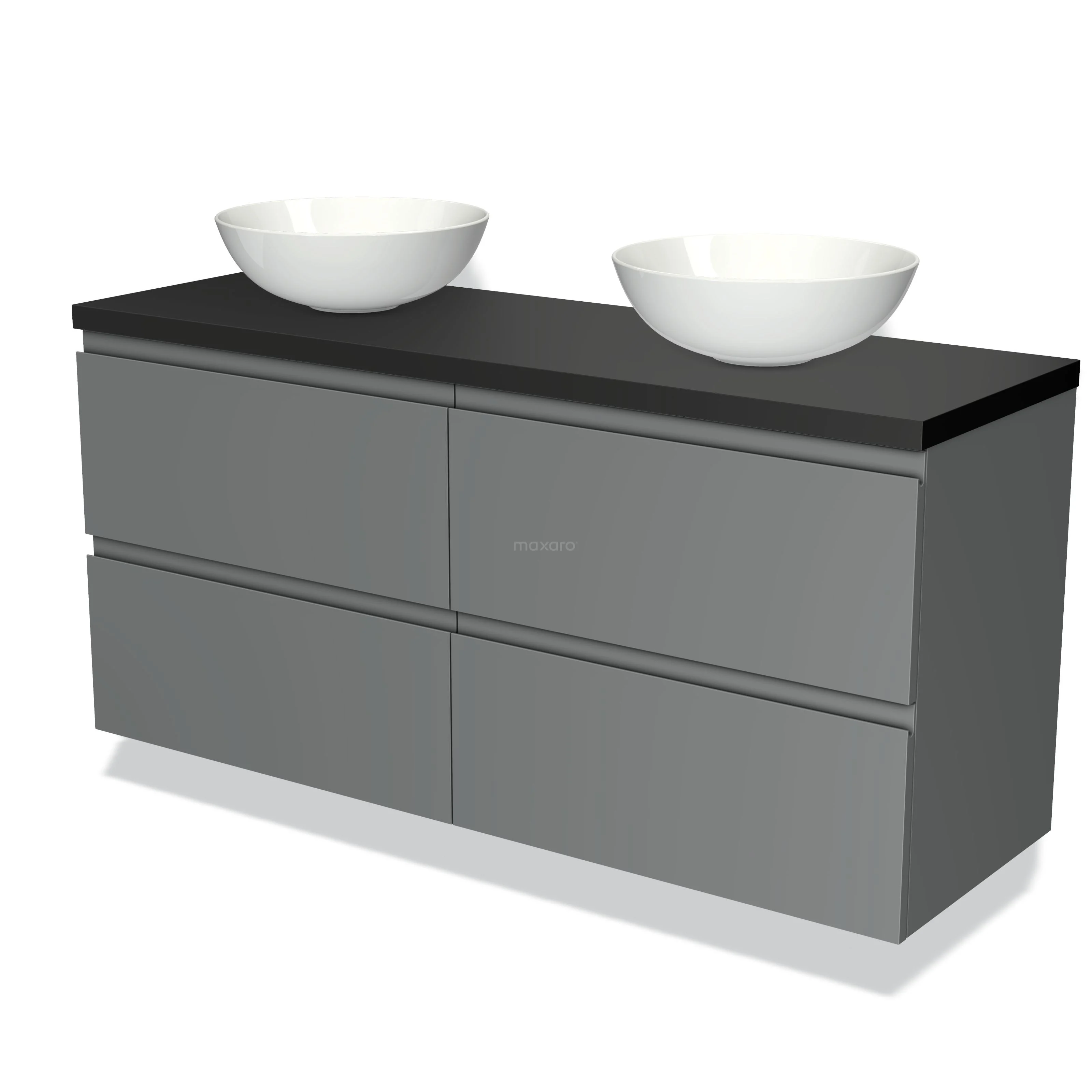 Badmöbel für Aufsatzwaschbecken 140cm Modulo Plato Mittelgrau 4 Schubladen Grifflos Matt Schwarz Platte