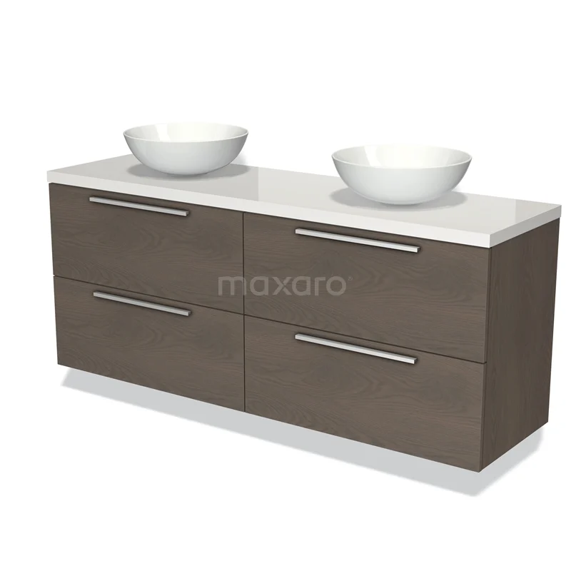 Badmöbel für Aufsatzwaschbecken 160cm Modulo Plato dunkelbraune Eiche 4 Schubladen Flach Hochglanz Weiß Platte