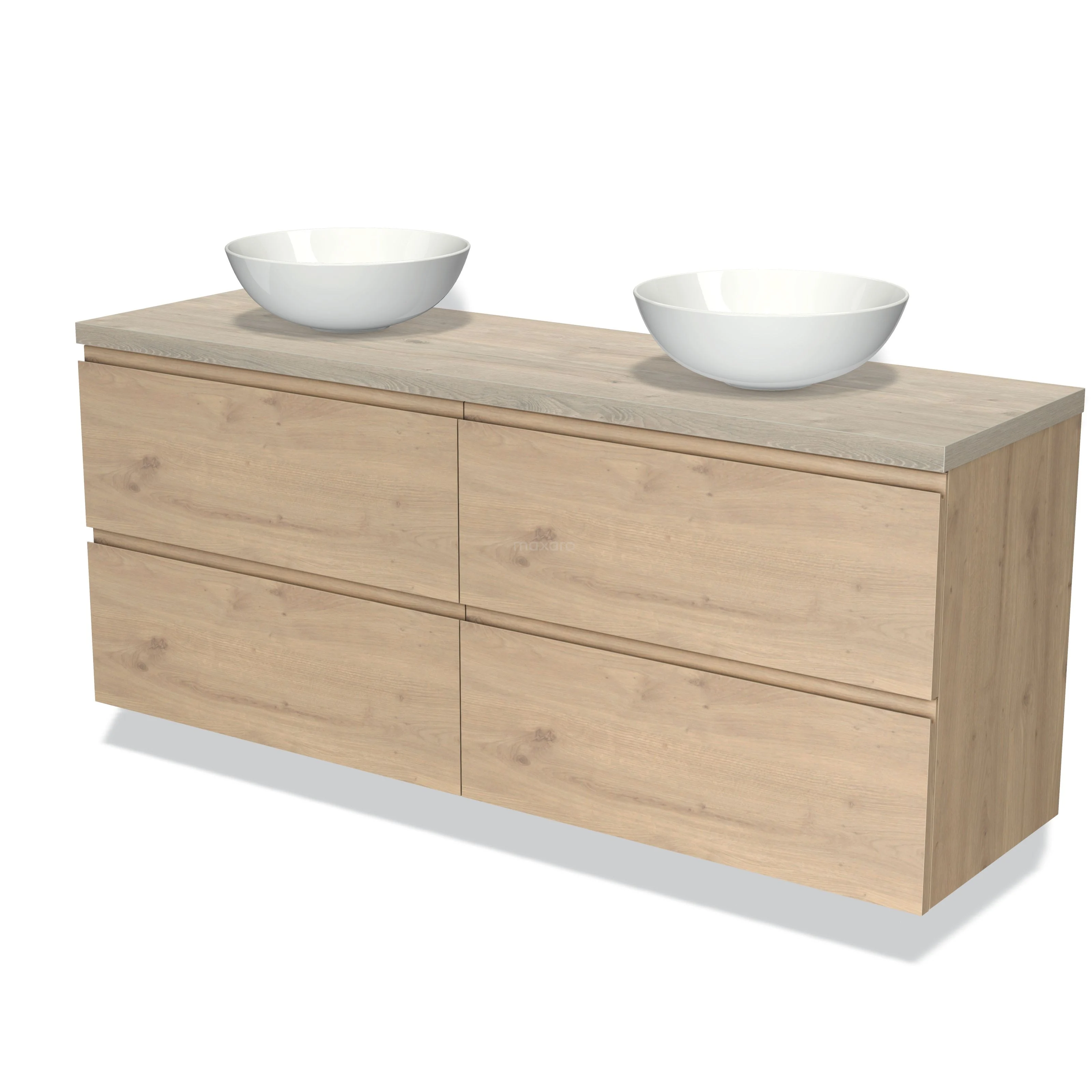 Modulo Plato Badmöbel mit Aufsatzwaschbecken | 160 cm Hellbraune Eiche Grifflos front Hellgraue Eiche blatt 4 Schubladen
