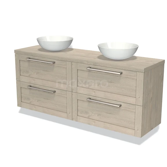 Badmöbel für Aufsatzwaschbecken 160cm Modulo Plato Hellgraue Eiche 4 Schubladen Rahmen