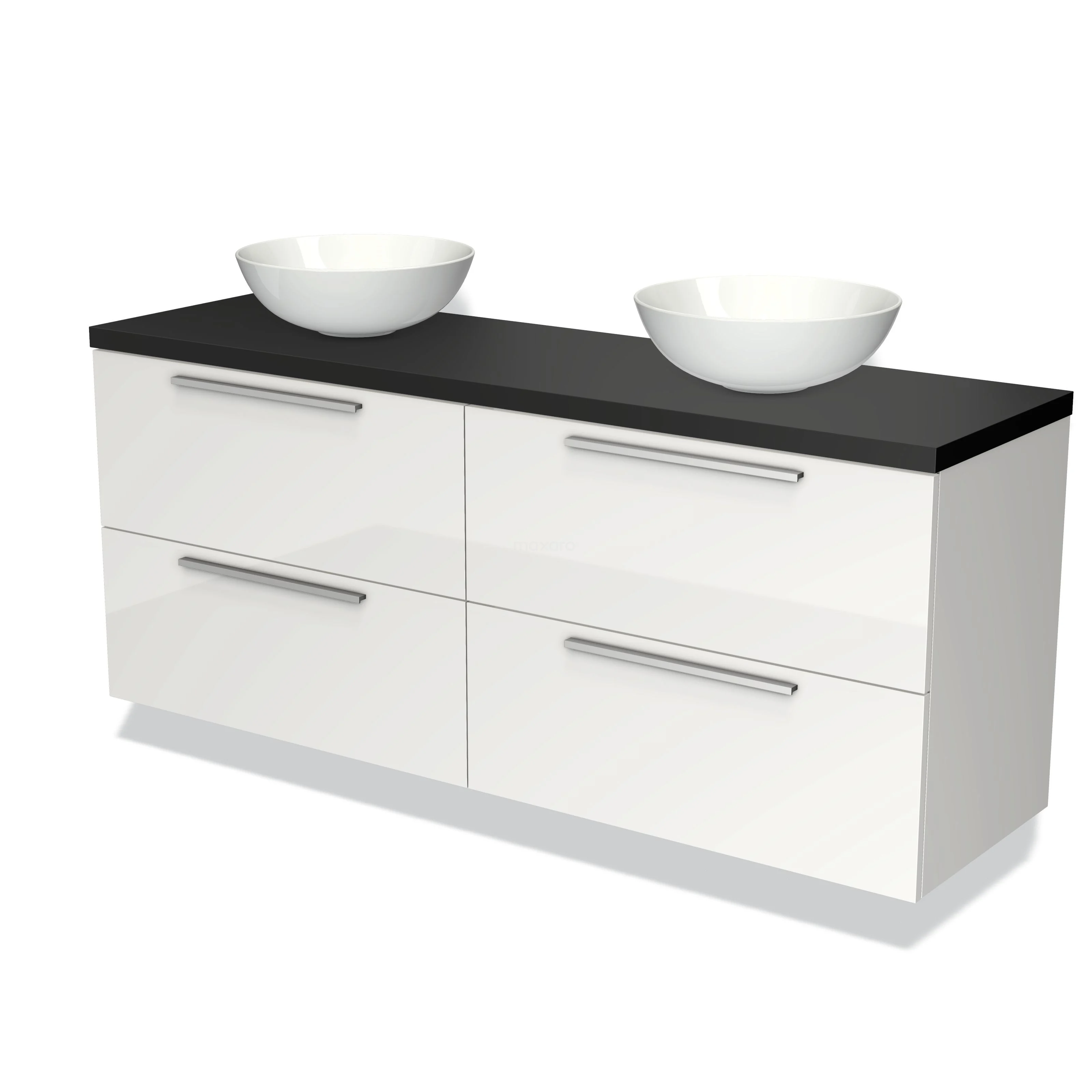 Badmöbel für Aufsatzwaschbecken 160cm Modulo Plato Hochglanz Weiß 4 Schubladen Flach Matt Schwarz Platte