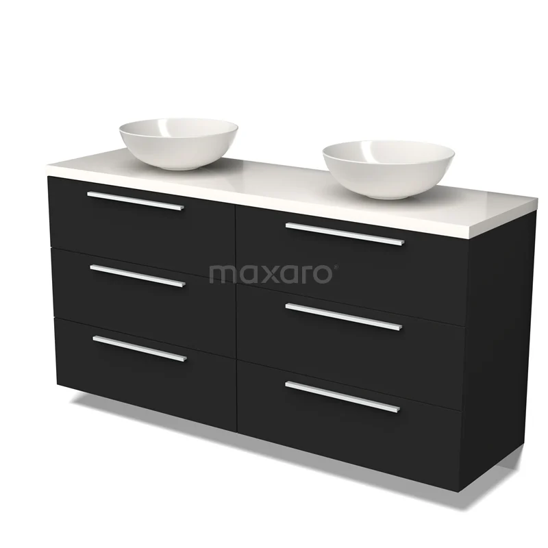 Modulo Plato Badmöbel mit Aufsatzwaschbecken | 160 cm Matt Schwarz Flach front Hochglanz Weiß blatt 6 Schubladen