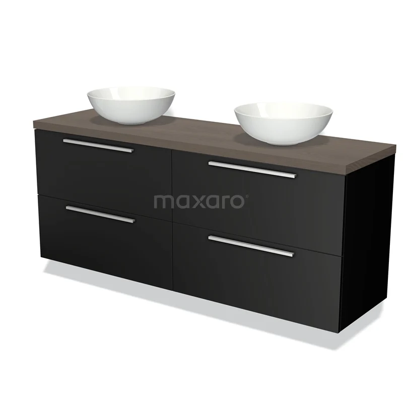 Modulo Plato Badmöbel mit Aufsatzwaschbecken | 160 cm Matt Schwarz Flach front Dunkelbraune Eiche blatt 4 Schubladen