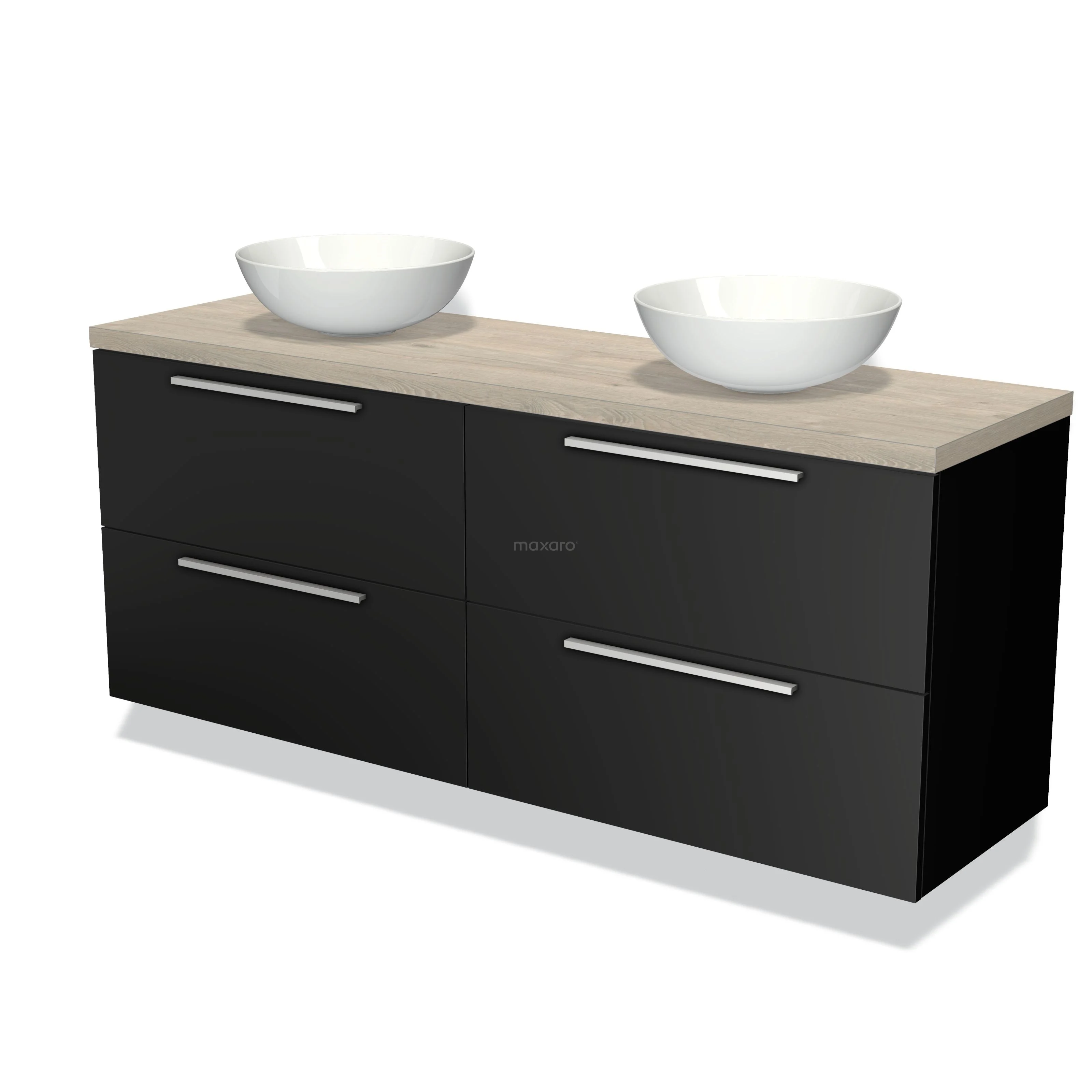 Badmöbel für Aufsatzwaschbecken 160cm Modulo Plato Matt Schwarz 4 Schubladen Flach Hellgraue Eiche Platte