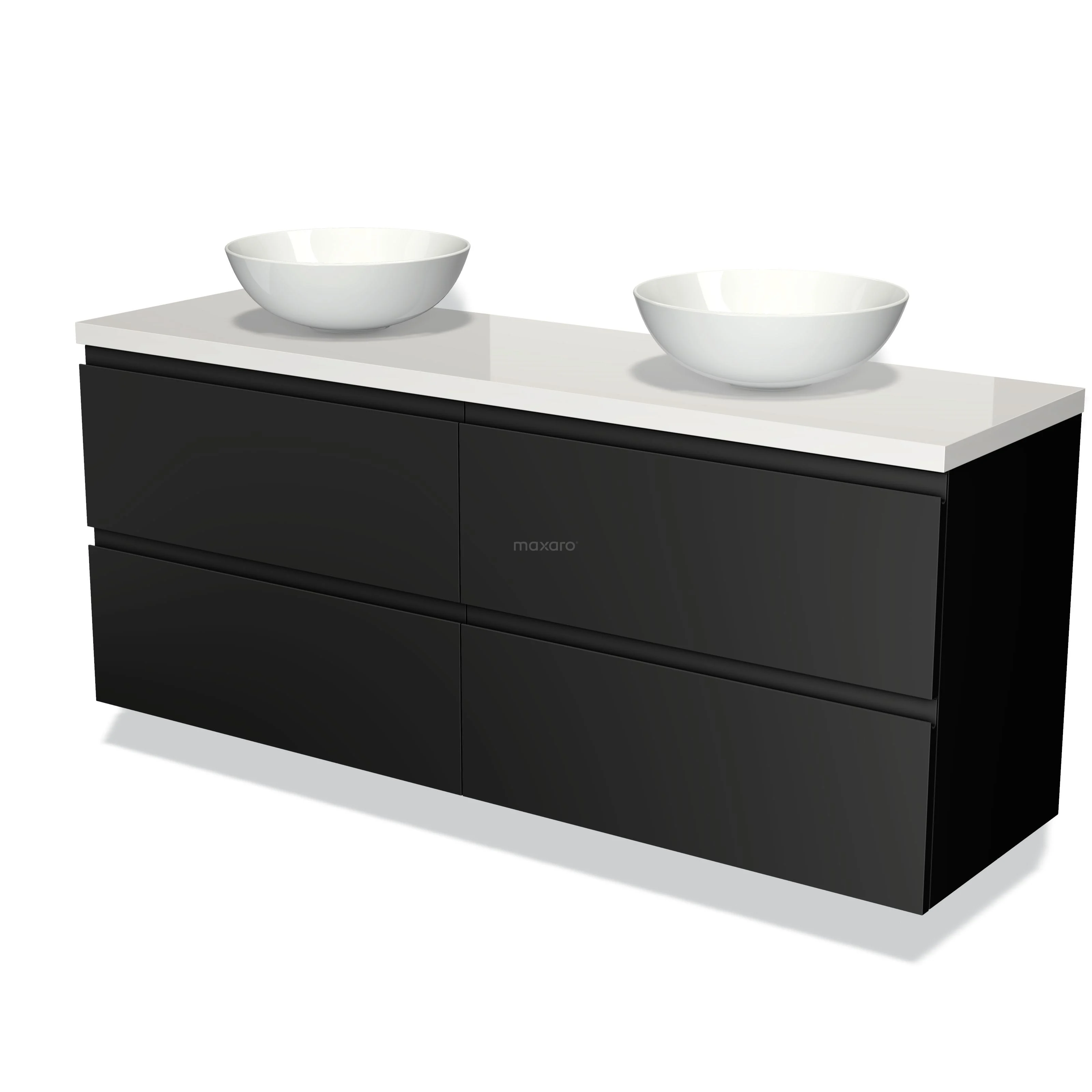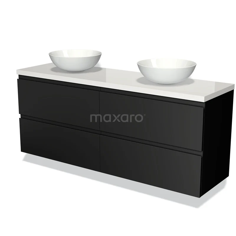 Badmöbel für Aufsatzwaschbecken 160cm Modulo Plato Matt Schwarz 4 Schubladen Grifflos Hochglanz Weiß Platte