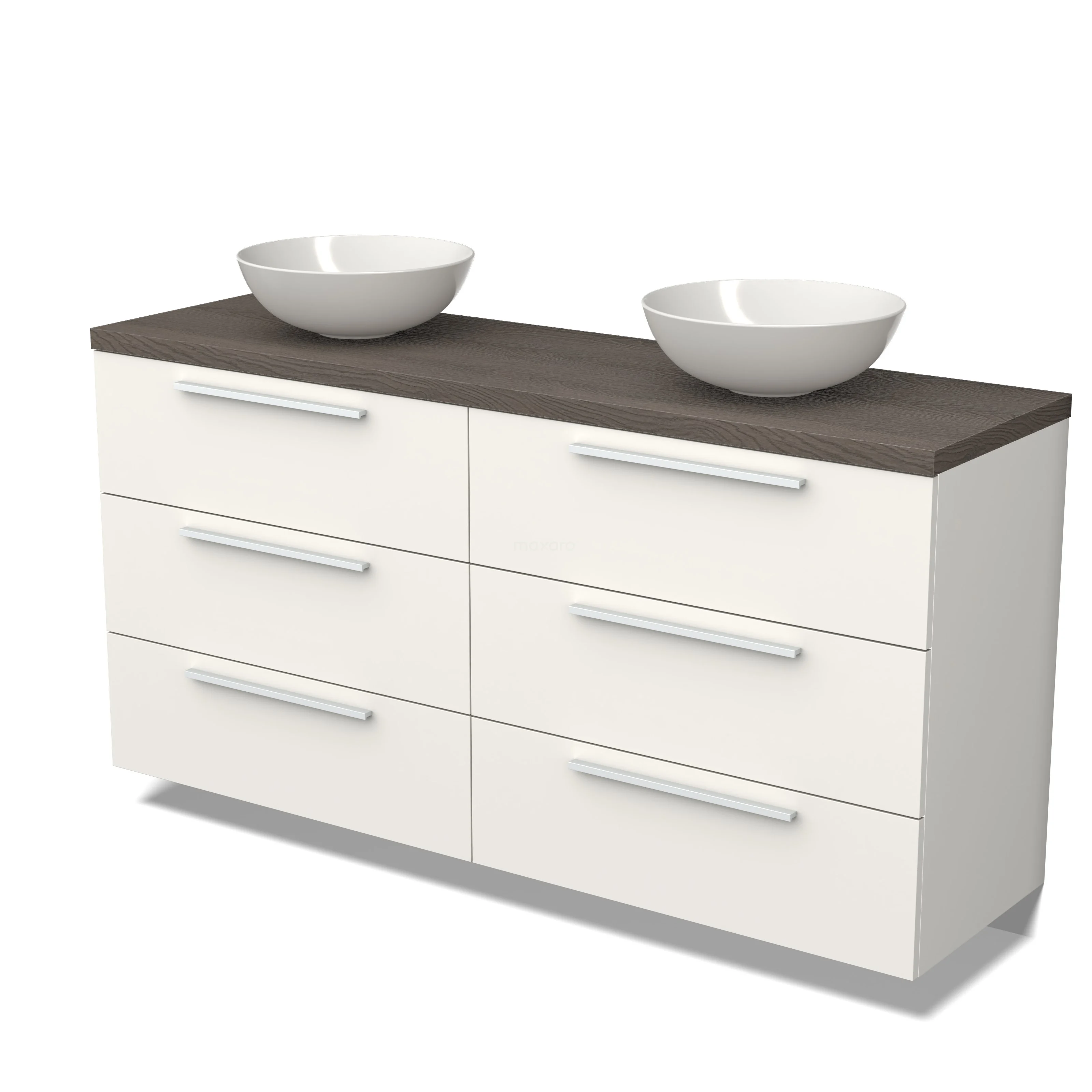 Badmöbel für Aufsatzwaschbecken 160cm Modulo Plato Matt Weiß 3 Schubladen Flach dunkelbraune Eiche Platte