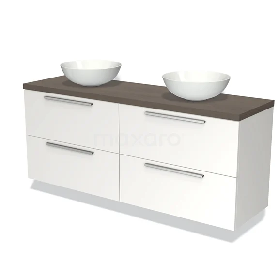 Badmöbel für Aufsatzwaschbecken 160cm Modulo Plato Matt Weiß 4 Schubladen Flach dunkelbraune Eiche Platte