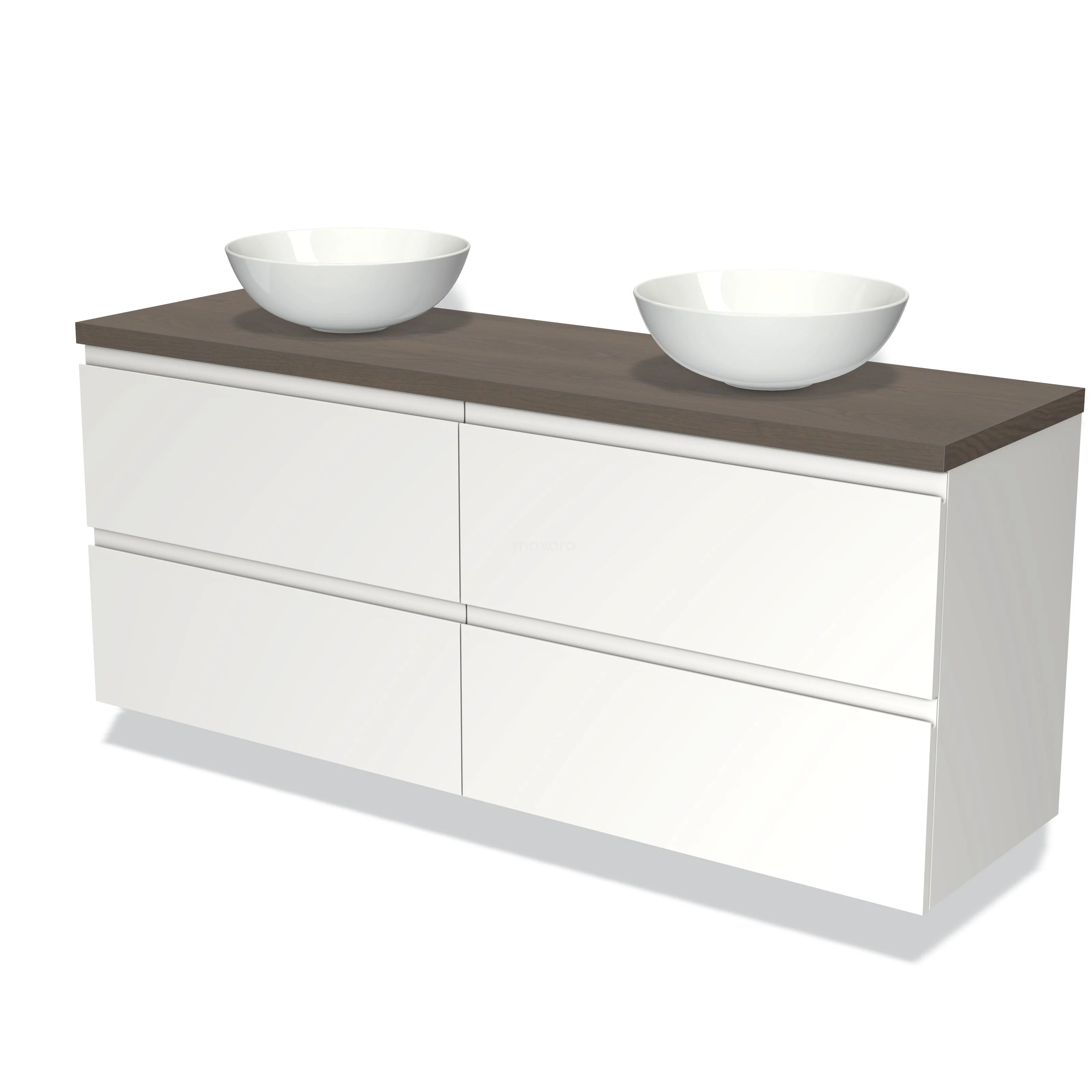 Badmöbel für Aufsatzwaschbecken 160cm Modulo Plato Matt Weiß 4 Schubladen Grifflose dunkelbraune Eiche Platte