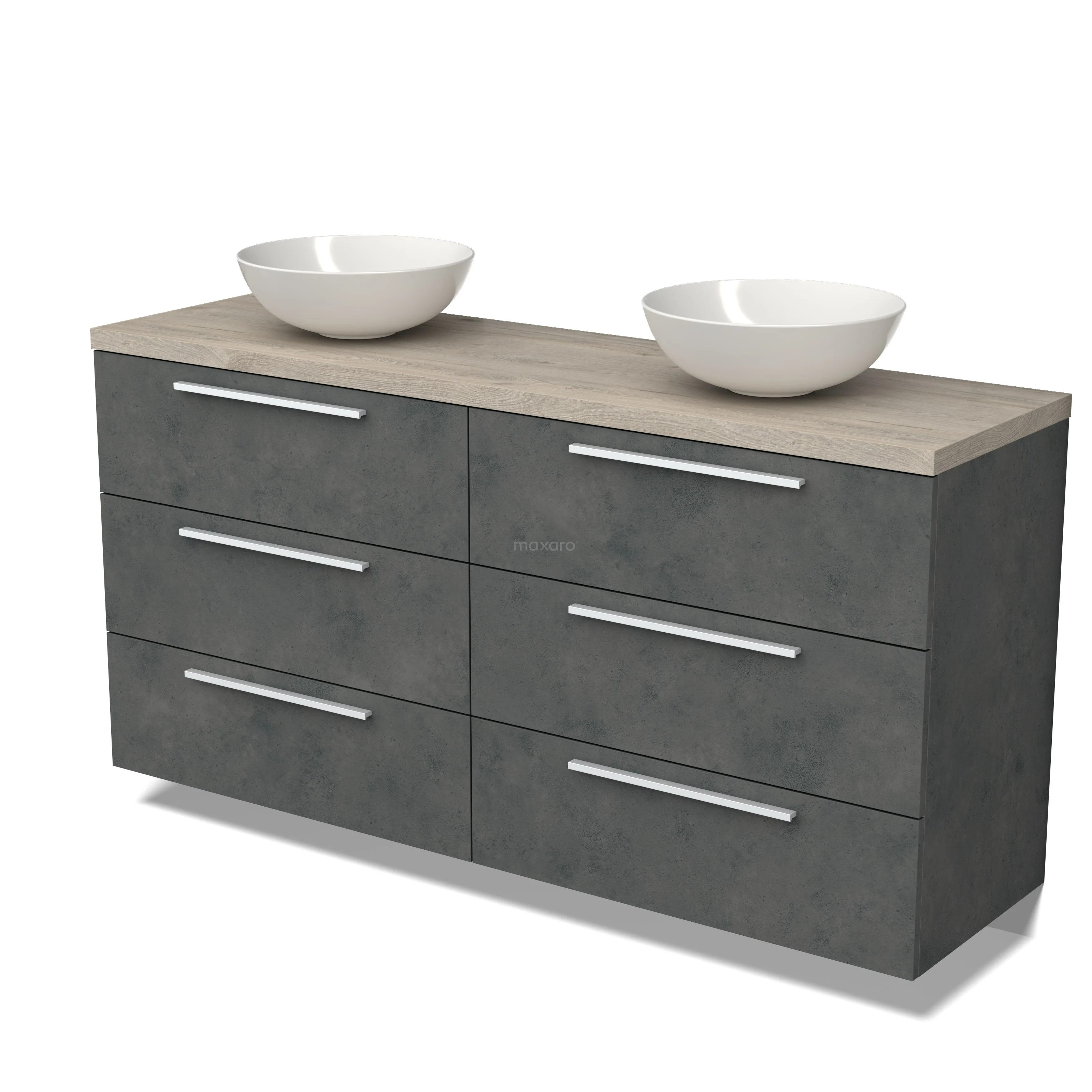 Badmöbel für Aufsatzwaschbecken 160cm Modulo Platte Dunkelgrau Beton 3 Schubladen Flach hellgraue Eiche Blatt