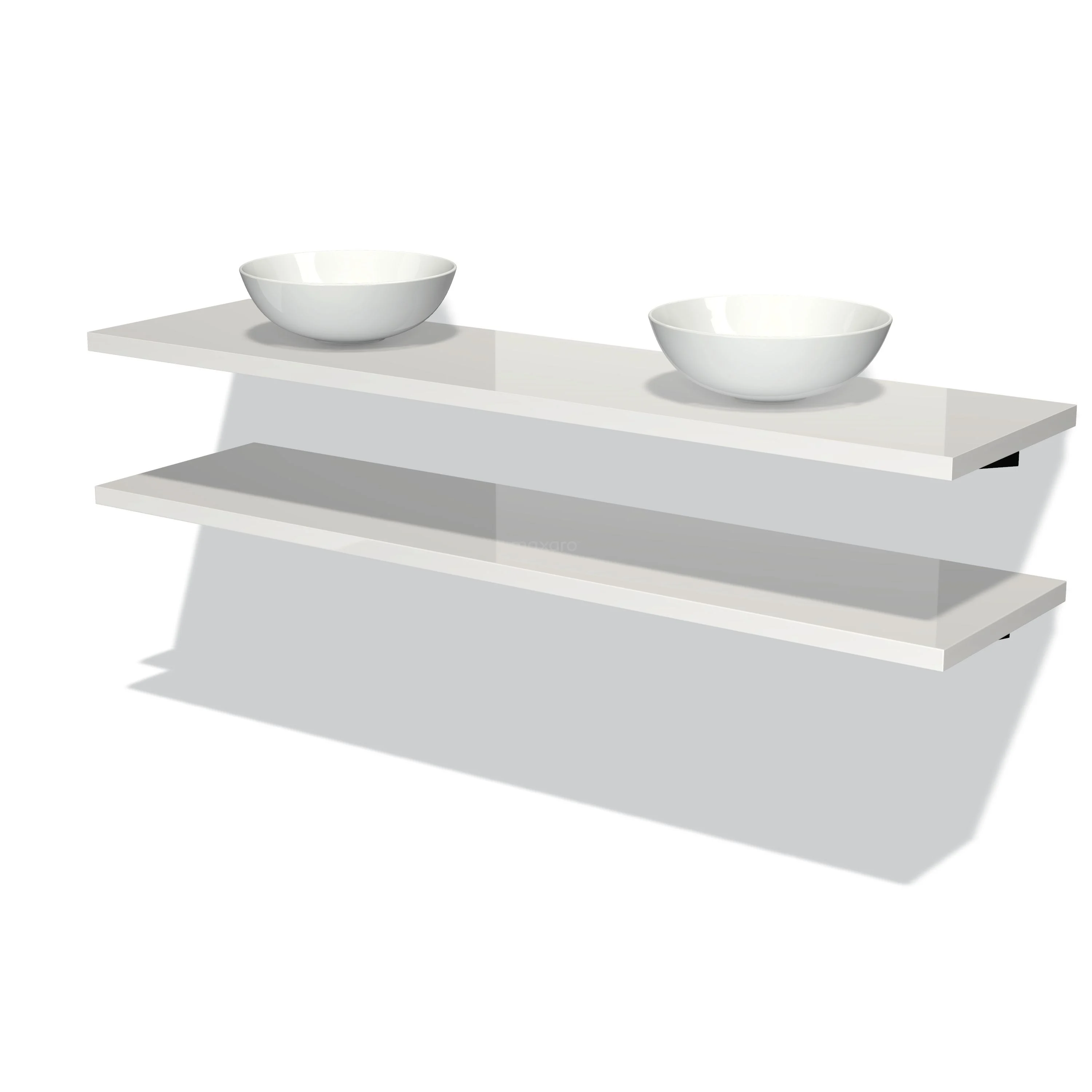Badmöbel für Aufsatzwaschbecken 180 cm Modulo Plato Hochglanz Weiß 2 Waschtischplatten