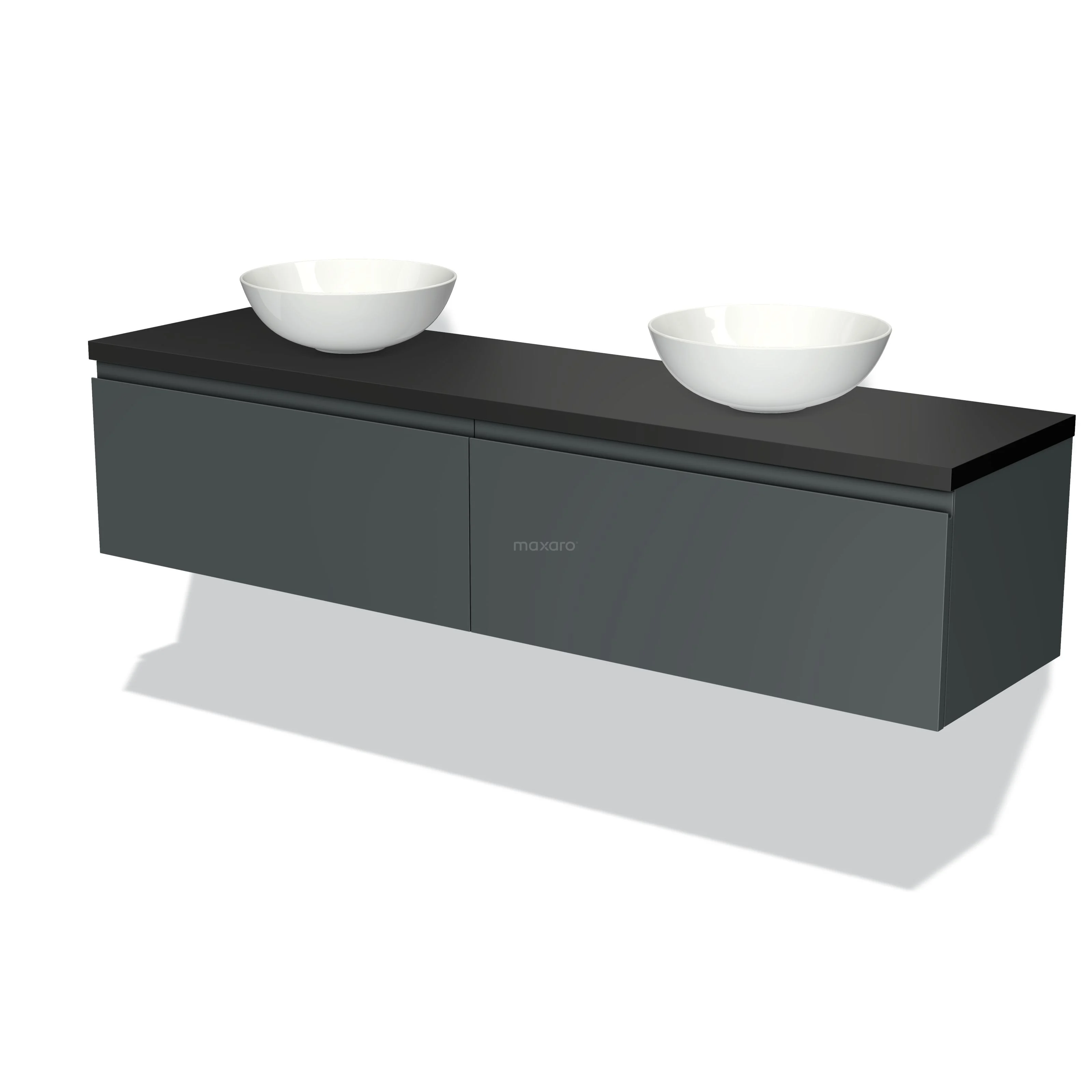 Badmöbel für Aufsatzwaschbecken 180cm Modulo Plato Dunkelgrau 2 Schubladen Grifflos Matt Schwarz Platte