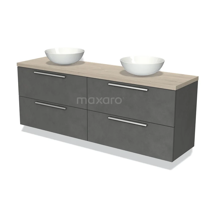 Badmöbel für Aufsatzwaschbecken 180cm Modulo Plato Dunkelgrau Beton 4 Schubladen Flach Hellgraue Eiche Platte