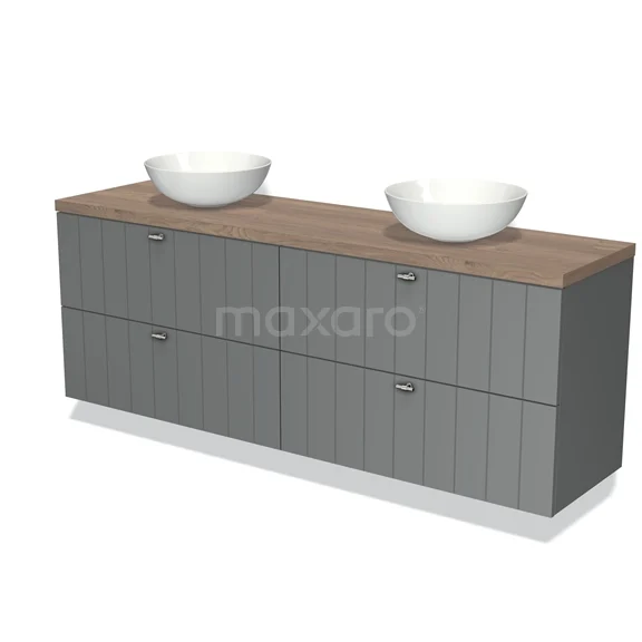 Badmöbel für Aufsatzwaschbecken 180cm Modulo Plato Mittelgrau 4 Schubladen Schiefer Mittelbraune Eiche Platte