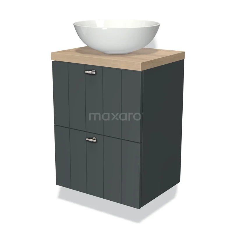 Badmöbel für Aufsatzwaschbecken 50cm Modulo Plato Slim Dunkelgrau 2 Schubladen Laminat