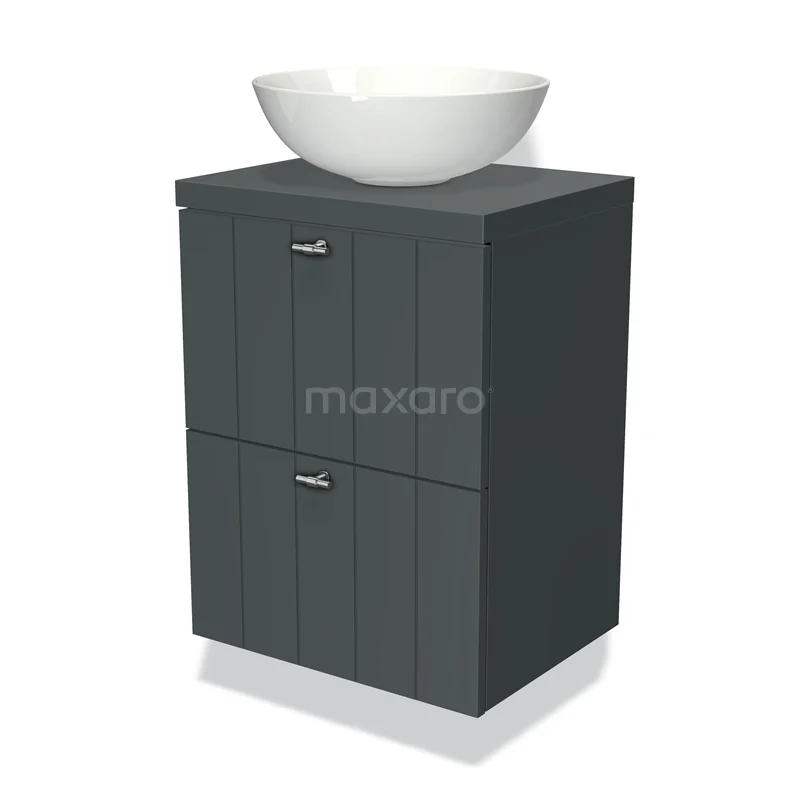Badmöbel für Aufsatzwaschbecken 50cm Modulo Plato Slim Dunkelgrau 2 Schubladen Laminat