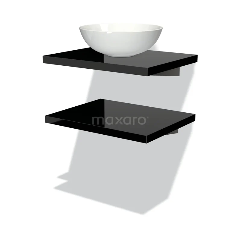 Badmöbel für Aufsatzwaschbecken 60 cm Modulo Plato Hochglanz Schwarz 2 Waschtischplatten