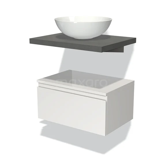 Modulo Plato Badmöbel mit Aufsatzwaschbecken | 60 cm Hochglanz Weiß Grifflos front Dunkelgrauer Beton blatt Tief hängend