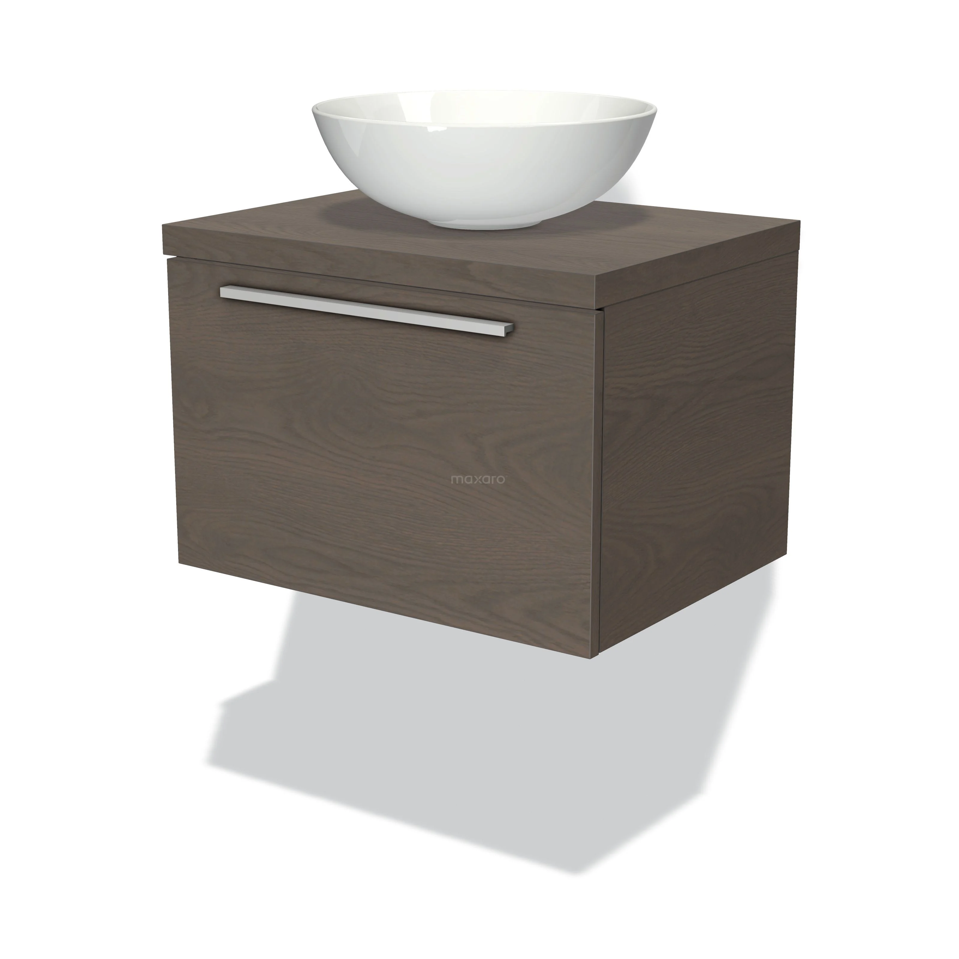 Badmöbel für Aufsatzwaschbecken 60cm Modulo Plato dunkelbraune Eiche 1 Schublade flach