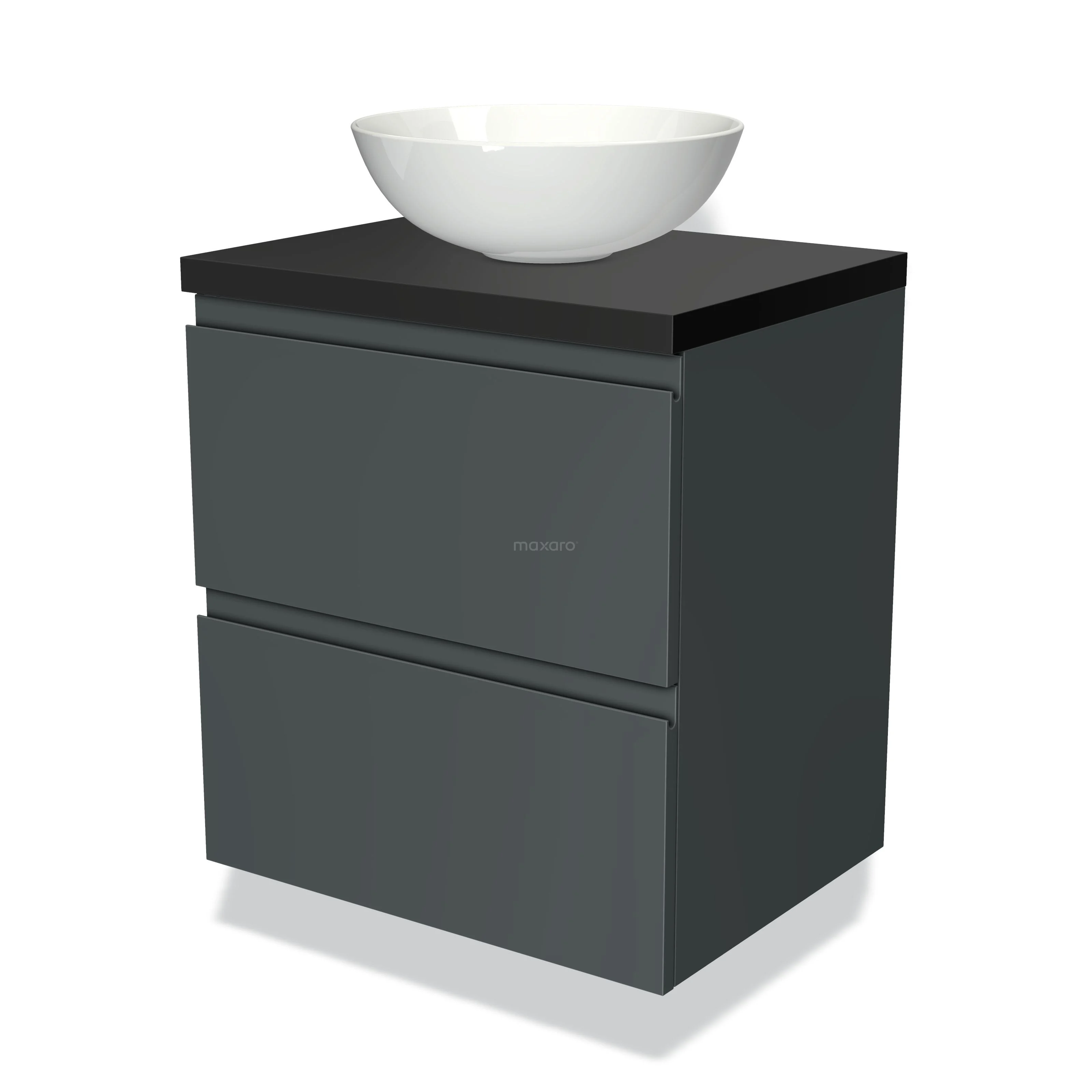 Badmöbel für Aufsatzwaschbecken 60cm Modulo Plato Dunkelgrau 2 Schubladen Grifflos Matt Schwarz Platte