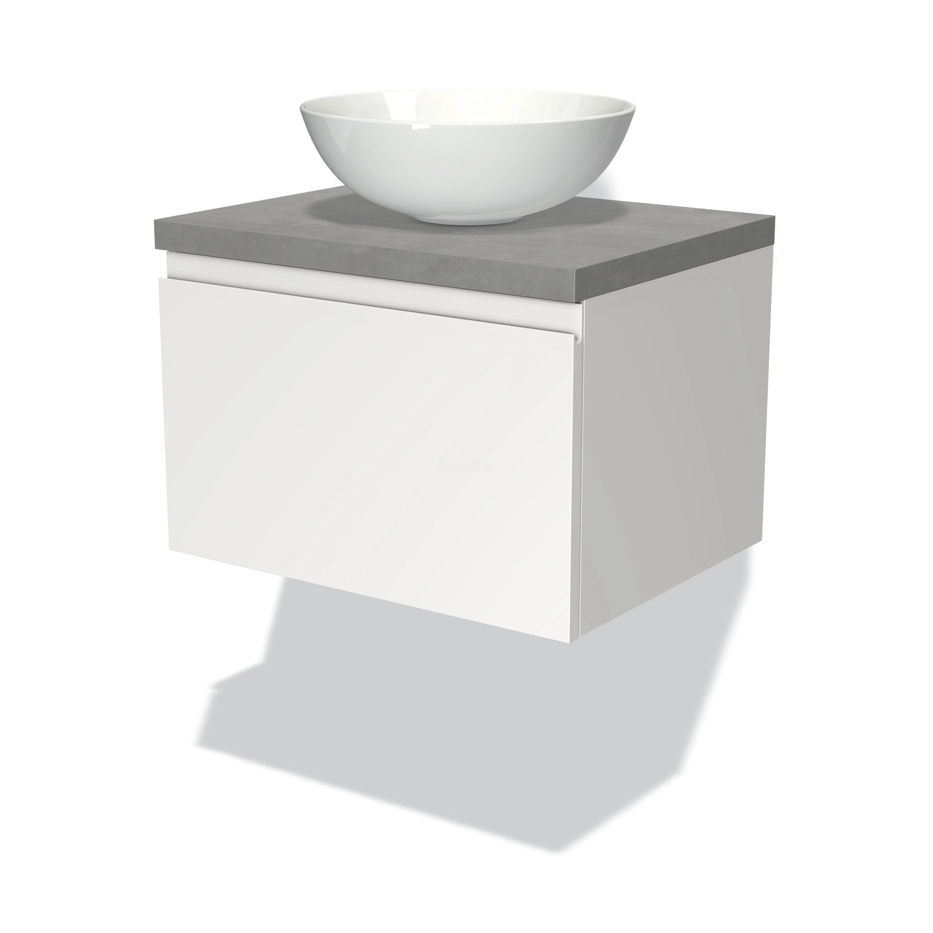 Badmöbel für Aufsatzwaschbecken 60cm Modulo Plato Matt Weiß 1 Schublade grifflos hellgrauer Beton Platte