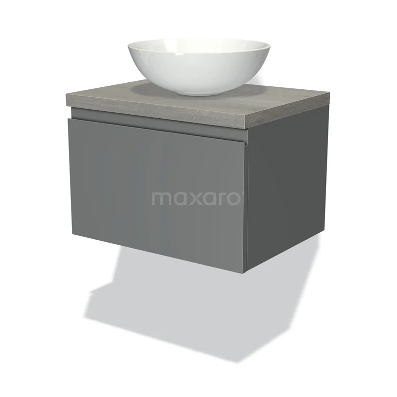 Badmöbel für Aufsatzwaschbecken 60cm Modulo Plato Mittelgrau 1 Schublade grifflos Graue Eiche Platte