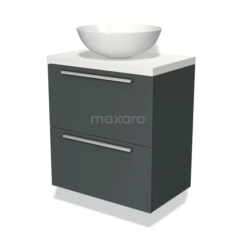 Badmöbel für Aufsatzwaschbecken 60cm Modulo Plato Slim Dunkelgrau 2 Schubladen Flach