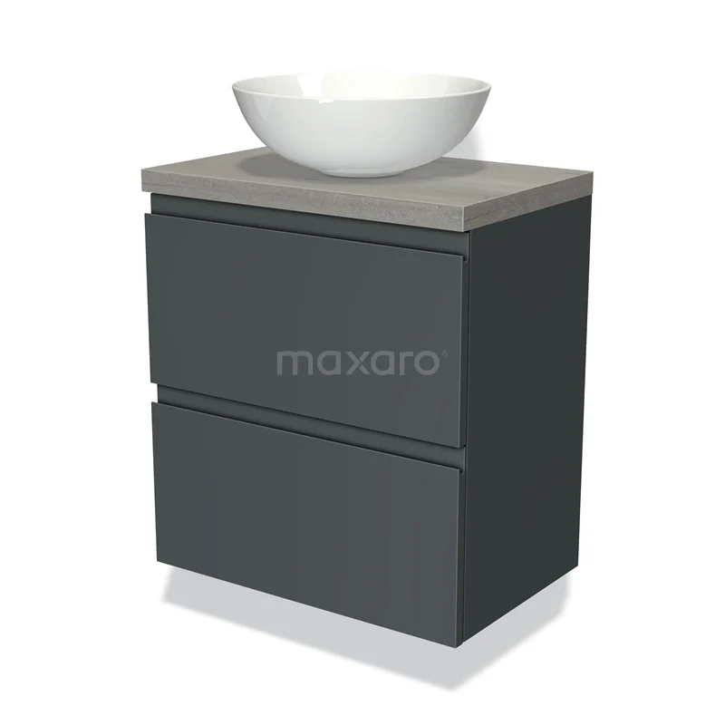 Badmöbel für Aufsatzwaschbecken 60cm Modulo Plato Slim Dunkelgrau 2 Schubladen grifflos