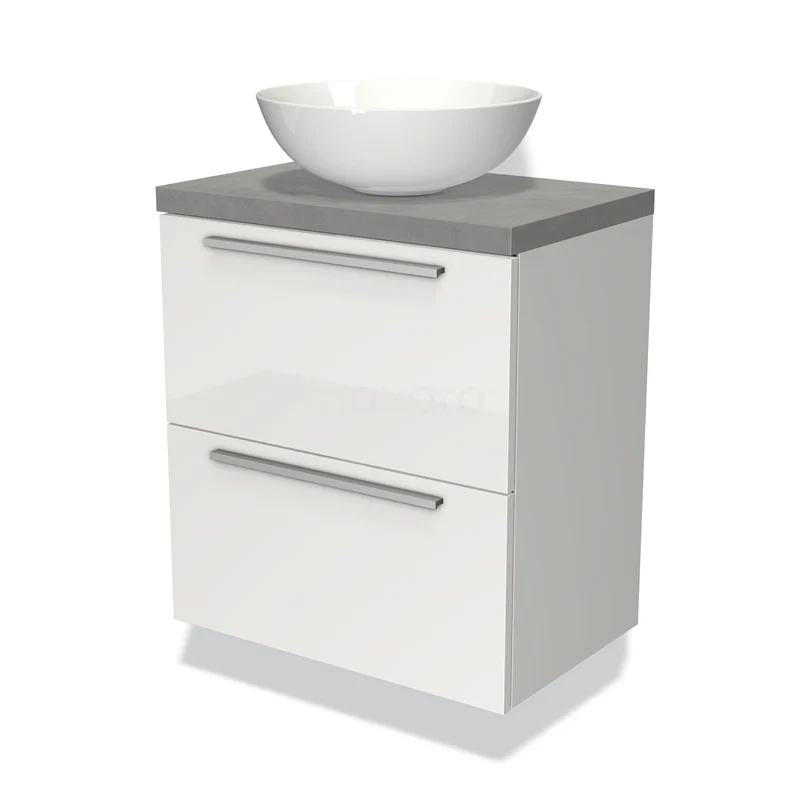 Badmöbel für Aufsatzwaschbecken 60cm Modulo Plato Slim Hochglanz Weiß 2 Schubladen Flach
