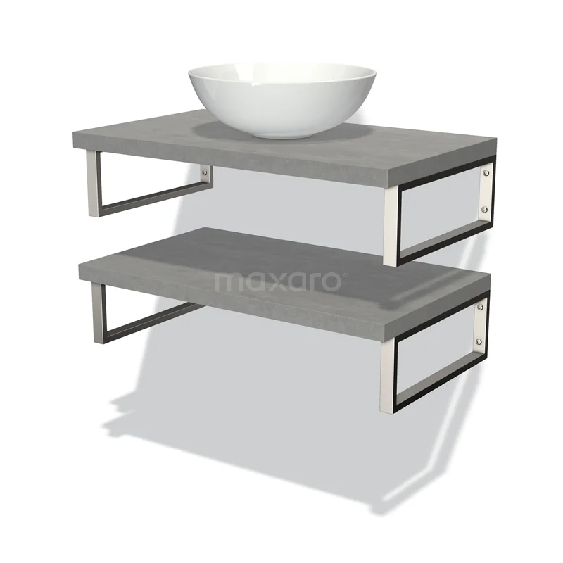 Badmöbel für Aufsatzwaschbecken 80 cm Modulo Plato hellgrauer Beton 2 Waschtischplatten