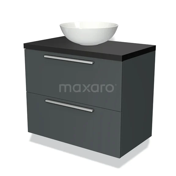 Badmöbel für Aufsatzwaschbecken 80cm Modulo Plato Dunkelgrau 2 Schubladen Flach Matt Schwarz Platte