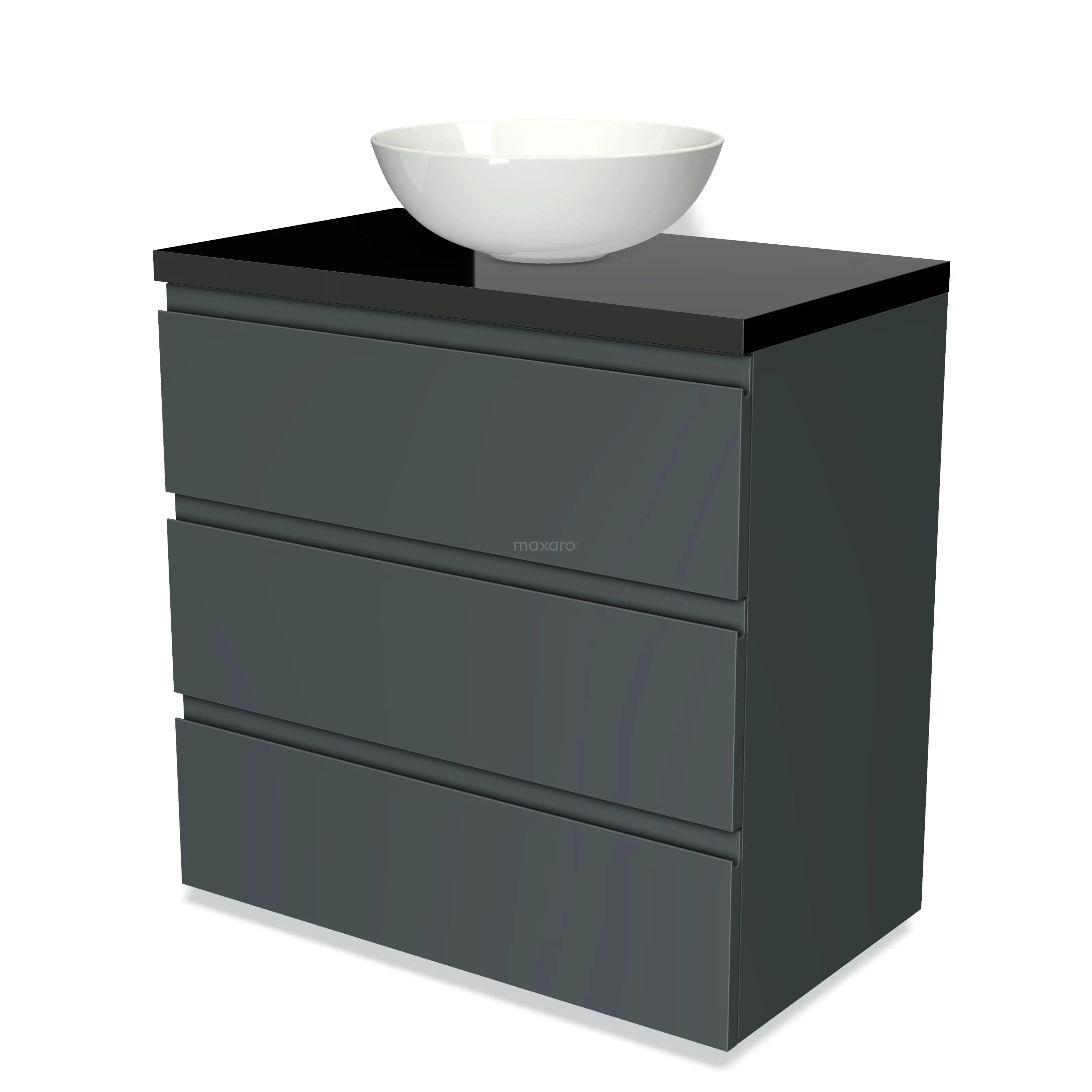 Badmöbel für Aufsatzwaschbecken 80cm Modulo Plato Dunkelgrau 3 Schubladen Grifflos Hochglanz Schwarz Platte