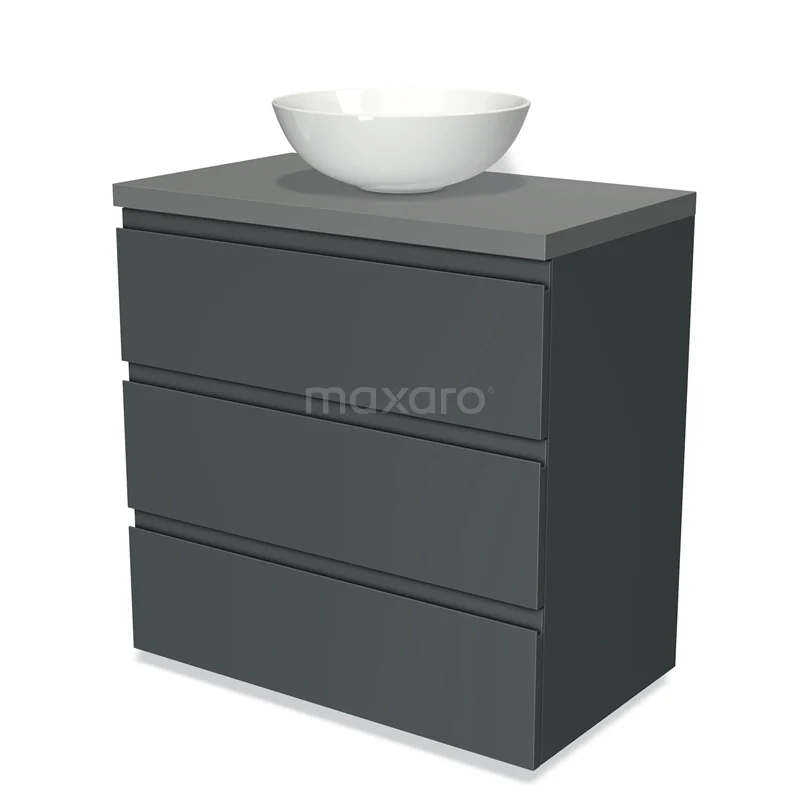 Badmöbel für Aufsatzwaschbecken 80cm Modulo Plato Dunkelgrau 3 Schubladen Grifflos Mittelgrau Platte