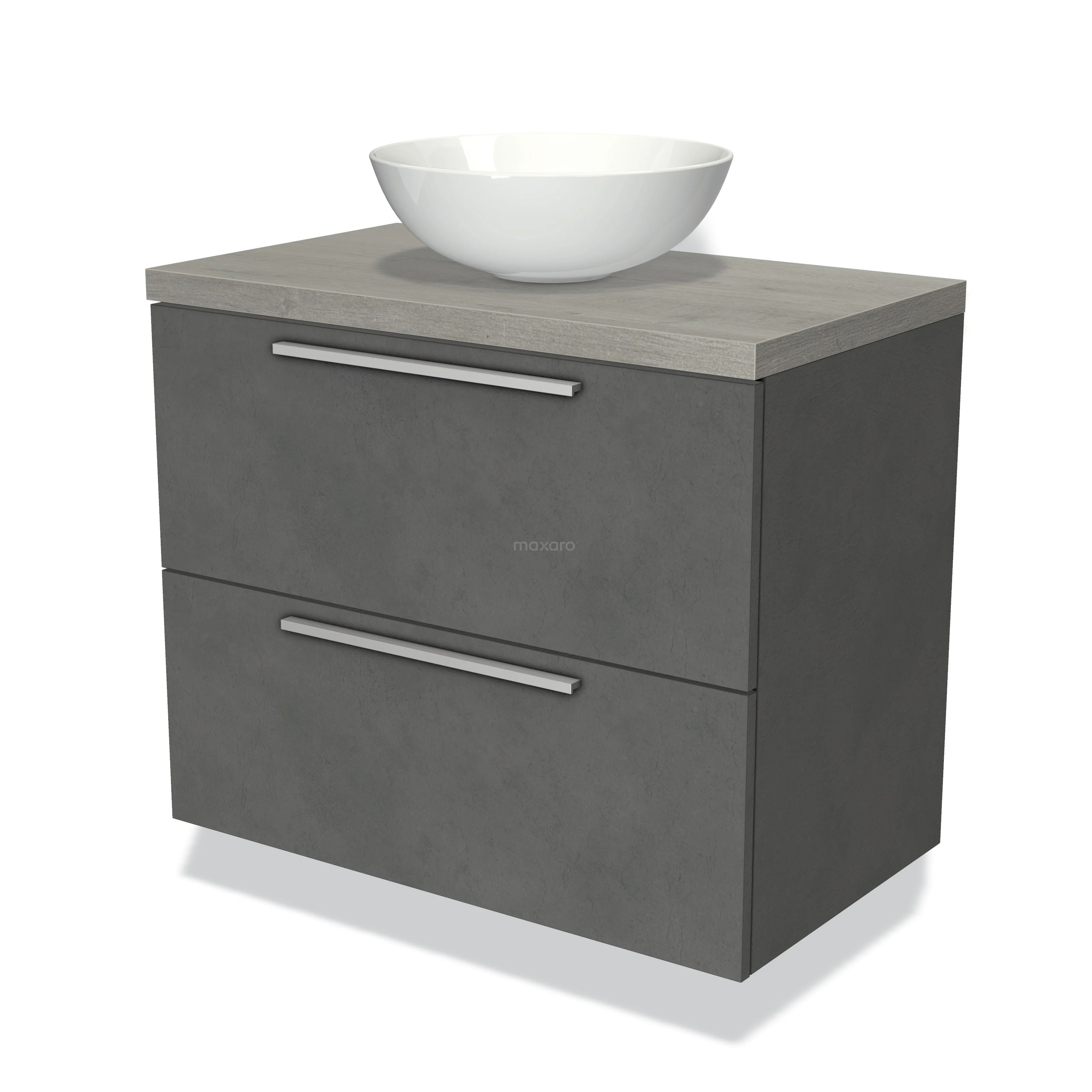 Badmöbel für Aufsatzwaschbecken 80cm Modulo Plato Dunkelgrauer Beton 2 Schubladen Flache Graue Eiche Platte