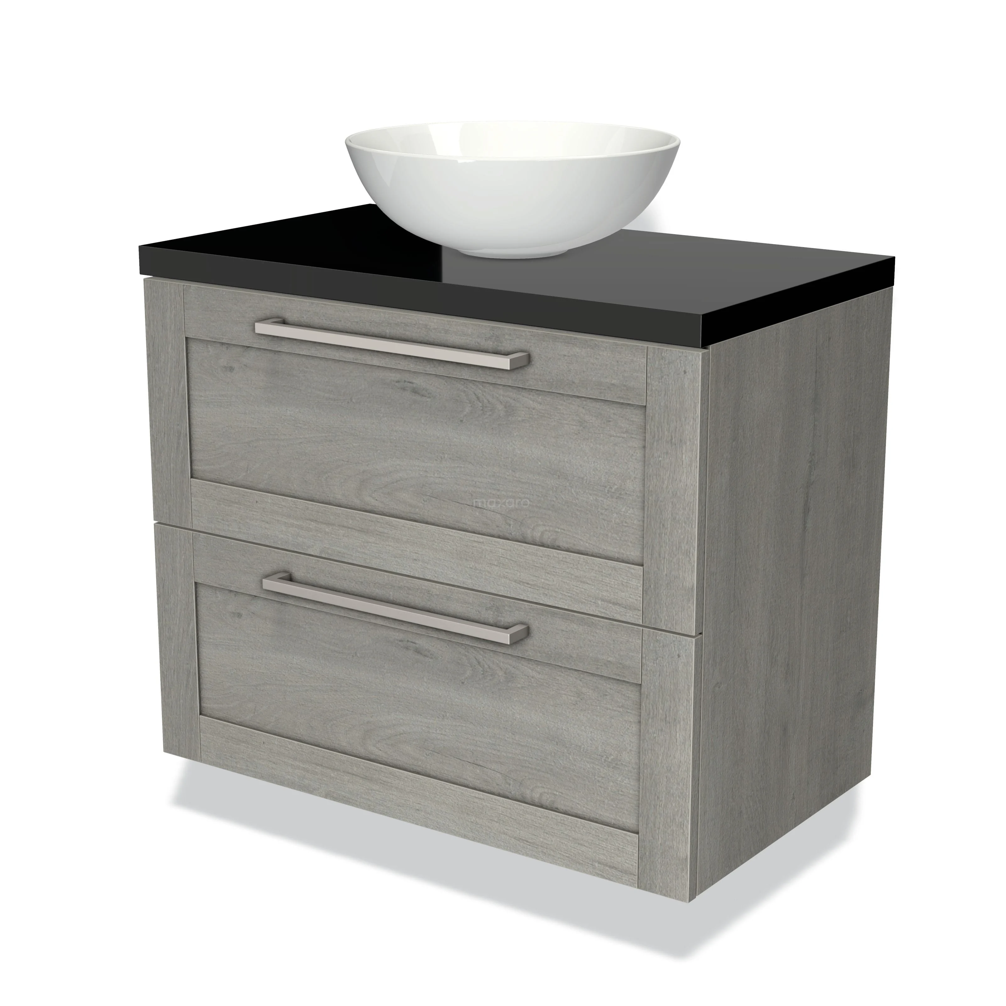 Badmöbel für Aufsatzwaschbecken 80cm Modulo Plato Grau Eiche 2 Schubladen Rahmen Hochglanz Schwarz Platte