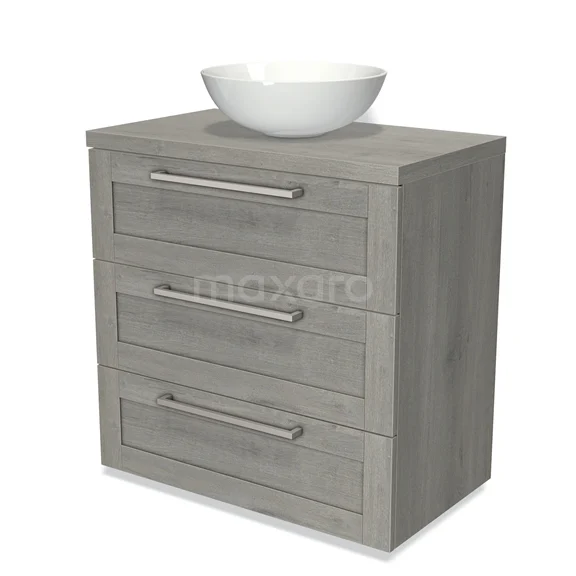 Badmöbel für Aufsatzwaschbecken 80cm Modulo Plato Graue Eiche 3 Schubladen Rahmen